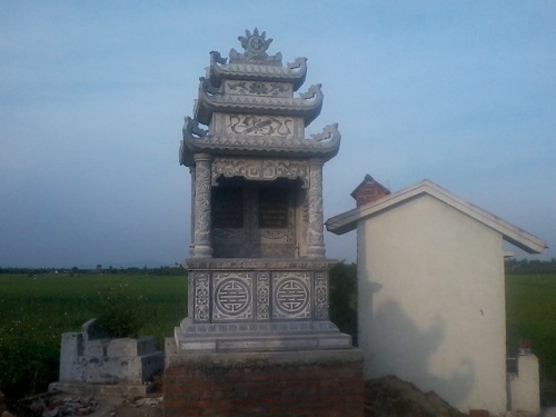 Chất liệu đá xanh Thanh Hóa bền vững, hoa văn trang trí tinh sảo sắc nét , các đầu mái đao cách điệu mềm mại tạo nên vẻ đẹp cổ kính uy nghi cho lăng mộ