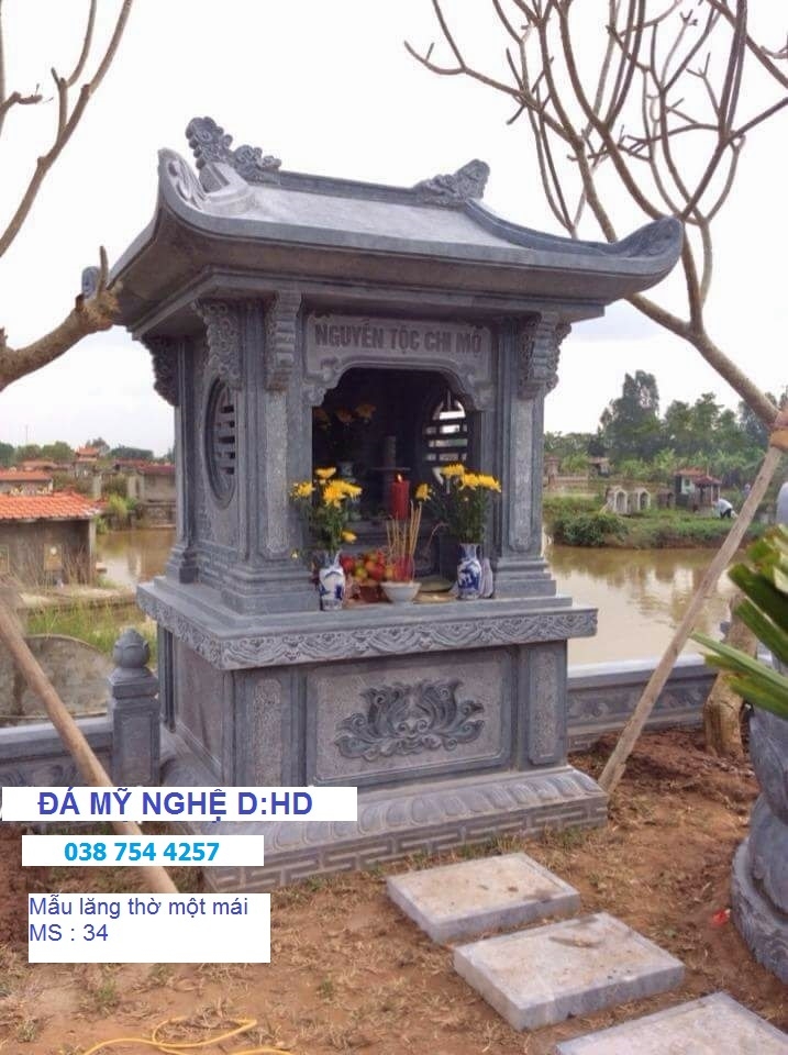 Mẫu lăng thờ đá một mái đẹp , với thiết kế duy nhất một mái che . Mẫu lăng thờ bằng đá này khác biệt so với các mẫu lăng khác, thường có hai mái hoặc ba mái .