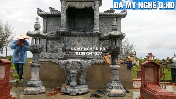 Phía trước lăng thờ đá đẹp à bộ đồ thờ bằng đá