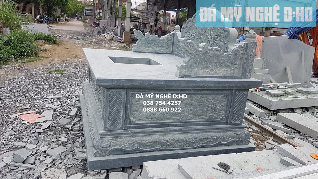 Mẫu mộ tổ chế tác bằng chất liệu đá xanh rêu cao cấp , thiết kế đẹp theo văn hóa việt với kích thước chuẩn lỗ ban và phong thủy . Mộ tổ bằng đá chạm khắc hoa văn tinh sảo với các họa tiết hoa văn cổ trong điêu khắc cổ truyền Việt Nam.