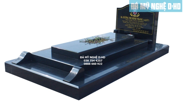 Mộ đá cao cấp từ cái nhìn đầu tiên đã thể hiện nét trang trọng , với thiết kế hiện đại dạng tam cấp . Mộ đá chế tác từ chất liệu đá hoa cương - granite cao cấp có độ cứng và độ bền cao đây là chất liệu đá tốt nhất trên thị trường hiện nay