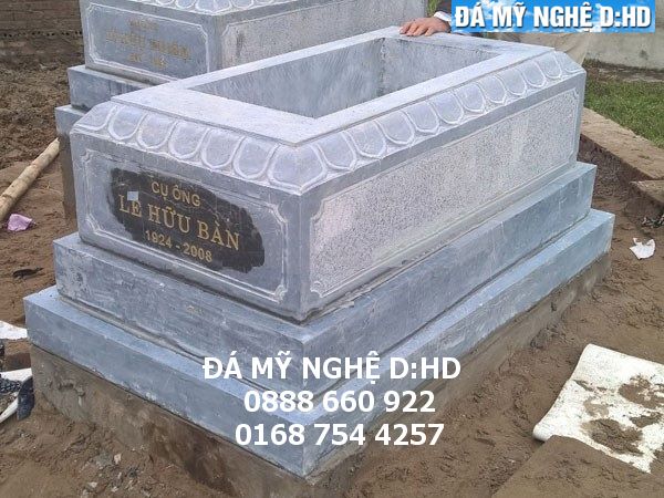 Mẫu mộ đá đơn giản này phần bia mộ được bố trí ngay phía trước mộ và chữ được khắc chìm trực tiếp lên bề mặt đá ,hai bên mộ chỉ băm nhám không chạm hoa văn. Mộ đá với thiết kế này có thể áp dụng đa dạng với nhiều kích thước mộ khác nhau .