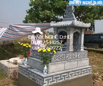Mộ đá một mái đao được thi công theo kiểu tam cấp với ba lớp đá dày đá khối
