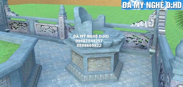 Hoa văn sử dụng trên mộ lục giác là hoa văn đầm sen tạo cảm giác nhẹ nhàng và thanh tao đồng thời tạo sự đồng nhất với toàn bộ ngôi mộ. Mộ đá lục giác với thiết kế này có thể sử dụng rất nhiều loại đá khác nhau như đá xanh đậm ,đá trắng ,đá vàng nghệ an, đá xanh rêu ...