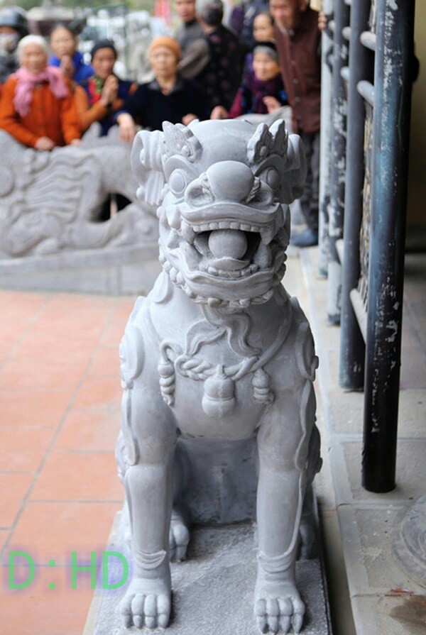 Chất liệu đá xanh tự nhiên, đây là mẫu nghê việt phục chế đầu tiên được cấp phép đưa vào các khu di tích để thay thế cho những mẫu sư tử trung quốc.mẫu nghê đá với dáng thân thon ,trường. Đầu nghê mang dáng dấp của đầu rồng thường thấy nhưng lại có nét kết hợp giữa đời thường thể hiện ở đôi tai nghê,trên thân nghê đá là những nét hoa văn mây cách điệu mềm mại.Chân nghê đã được tạo có phần to và nở nang hơn .