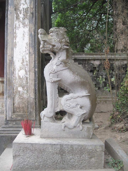 Ở Trung Hoa, người ta không thích đưa chó vào các lăng tẩm đền đài, vì chó không phải các loài thú cát tường(8). Trong tiếng Hán, có hai chữ chỉ chó, một là cẩu, hai là khuyển. Đại bộ phận những thành ngữ có từ cẩu và từ khuyển hàm ý rất tệ. Sư tử là con vật thường thấy nhất, phổ biến nhất trong các lăng tẩm, đền đài kể từ thời Đường đến nay. Ngược lại, ở Việt Nam, nghê đá thực sự là linh vật thường thấy nhất ở các đền miếu, lăng tẩm sinh từ.