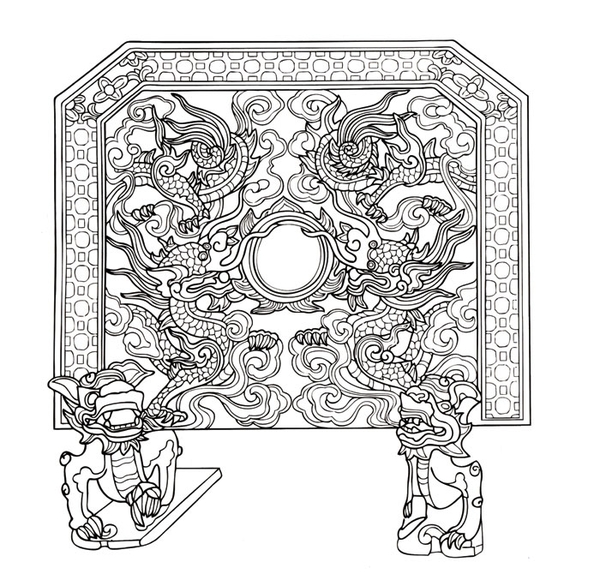 Trong không gian tín ngưỡng đền miếu người Việt, đặc biệt là miếu các vị tiên đế, đồ án rồng được sử dụng phổ biến với tần suất lớn, hình ảnh tinh mỹ trên những vị trí tôn nghiêm. Đền vua Đinh vua Lê sau lần trùng tu lớn vào thời Quang Hưng thời Lê Trung Hưng, tiếp tục phát triển mở rộng thêm một số hạng mục trong thời kỳ nhà Nguyễn. Ngoài đồ án rồng, một trong những linh vật xuất hiện nhiều trong hai ngôi đền chính là đồ án nghê - theo truyền thuyết là một trong chín đứa con của rồng. Trong chạm khắc đình làng ta thấy xuất hiện rất nhiều ảnh hình ảnh náo nức rộn ràng, vui nhộn của đồ án long nghê khánh hội. Chính kiểu thức đồ án này nghe đã kéo con rồng vốn dĩ từ lâu bị các thế lực phong kiến ở phương Đông cung đình hóa để độc chiếm cho biểu tượng của vương quyền và hoàng gia xuống với đời thường.
