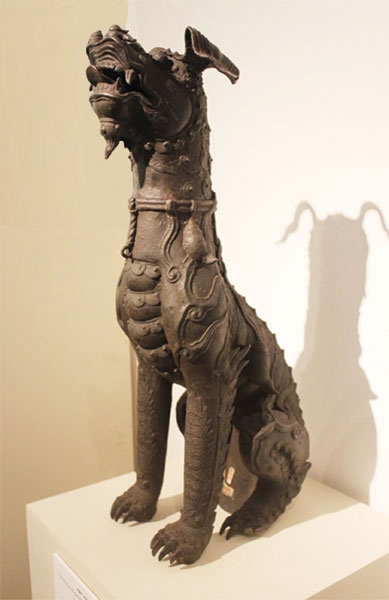 Một số tượng nghê - linh vật được trưng bày trong triển lãm chuyên đề “Hình tượng sư tử và nghê trong nghệ thuật điêu khắc cổ Việt Nam” tại Bảo tàng Mỹ thuật Việt Nam tháng 11/2014