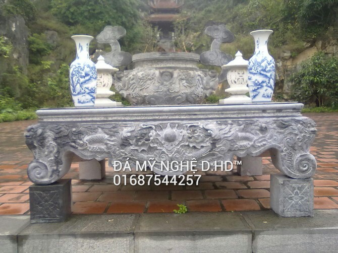 Sập đá 03 được sử dụng trong các khuôn viên như chùa ,đình, nhà thờ họ,có thể đặt trong nhà hoặc ngoài trời.